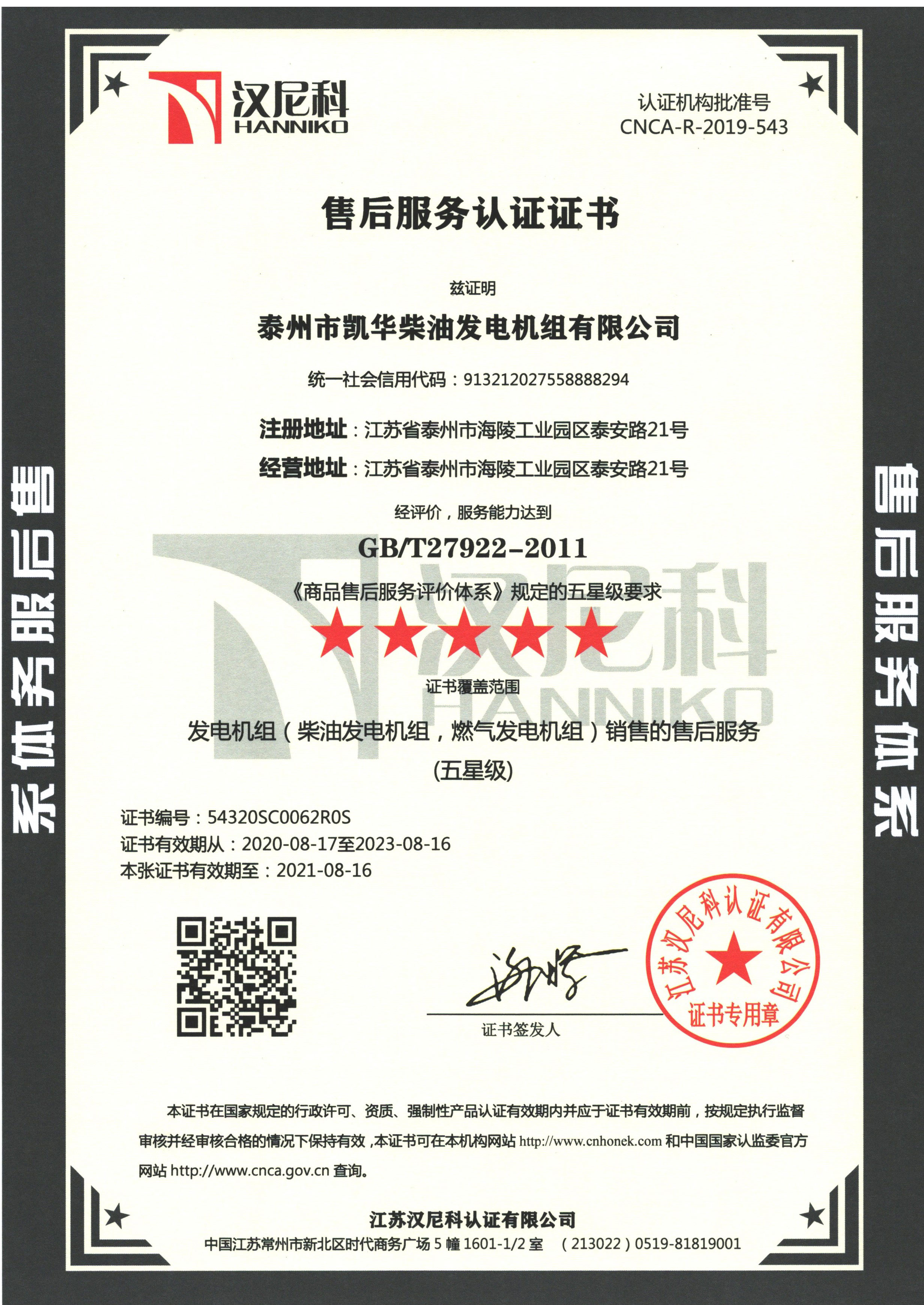 泰州市凱華柴油發(fā)電機組有限公司創建于2003年,是一家集柴油發(fā)電機組燃氣發(fā)電機組的研發(fā)、生產、銷售為一體的高新技術民營企業,公司座落于“漢唐古郡,淮海名區”,具有“鳳凰城”美稱的祥泰之州——江蘇省泰州市,地處中國經濟最發(fā)達的長三角經濟圈,水陸空立體交通,地理位置十分優(yōu)越。公司目前注冊資本金11800萬元人民幣,生產基地占地六十畝,現有各類高素質員工一百多名,專業技術人員達46人,其中高級技術人員16人,年銷售額近6億元。 公司主營產品:3~3000KW陸用柴油發(fā)電機組,15~600KW移動拖車電站,12~1000KW船用應急柴油發(fā)電機組,各種靜音型、中高壓、多機并聯、燃氣等特種機組以及進口系列柴油發(fā)電機組,可滿足不同客戶的一切電力需求,還可滿足用戶不同電壓、不同頻率的要求。凱華公司是康明斯品牌的授權代理商,專業生產供應康明斯柴油發(fā)電機組。